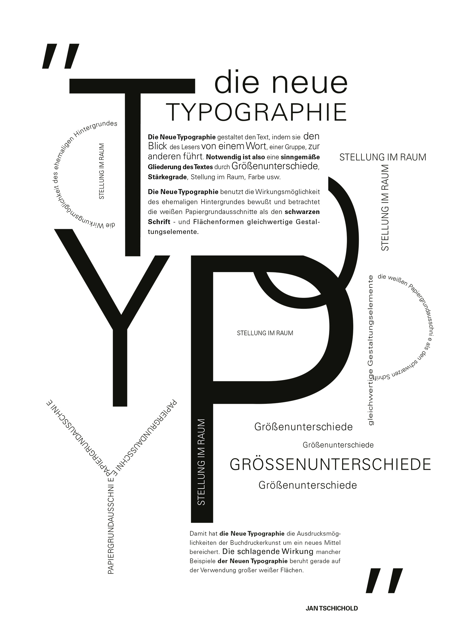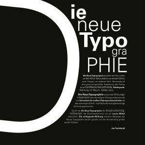 Typografie ist der medienunabhängige Gestaltungsprozess, bei dem Schrift, Bilder, Linien, Flächen und Leerraum verwendet werden, um verschiedenste Kommunikationsmedien zu gestalten.